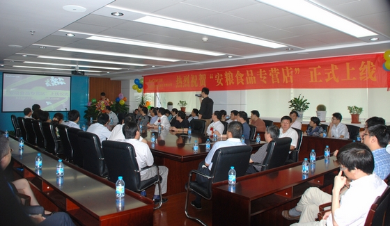 經過5個月的精心籌備,7月20日上午11:30分,公司電子商務平臺——“安糧食品專營店” ( http://alsp.tmall.com)在15樓會議室舉行隆重的上線儀式,公司管理層以及各子公司、各部門代表60余人參加了上線儀式。