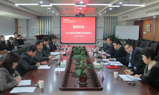 1月25日,愛地農業2012年員工考評述職及總結表彰會在盛安廣場22樓會議室召開。愛地農業全體員工參加了會議,安糧控股董事會秘書潘冬生應邀出席。